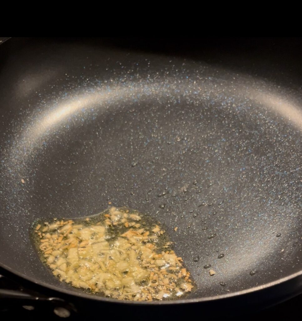 手順1:にんにくとオリーブオイルをよく炒める