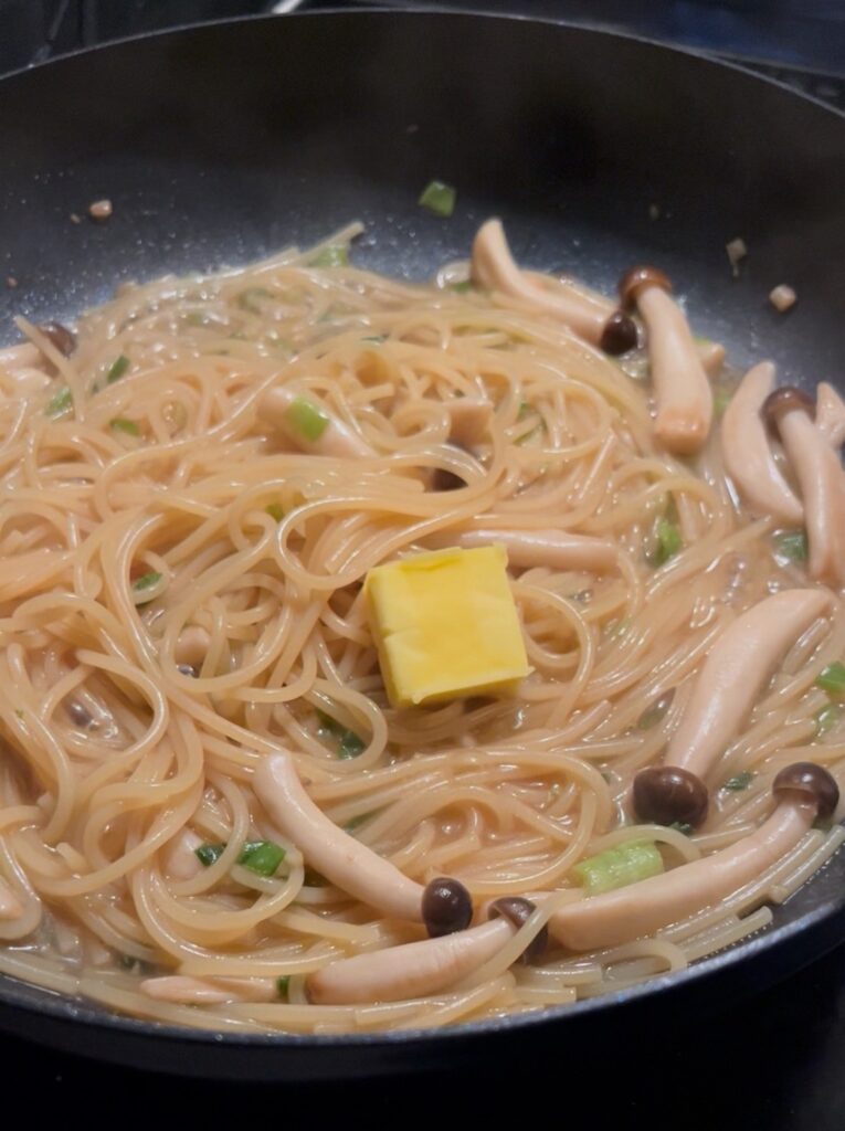 めんつゆ・しょうゆ・バターの塩分があるため、仕上げの塩は「少しずつ」加えるのがおすすめです。味見をしながら、和風パスタらしいやさしい塩加減を目指しましょう。