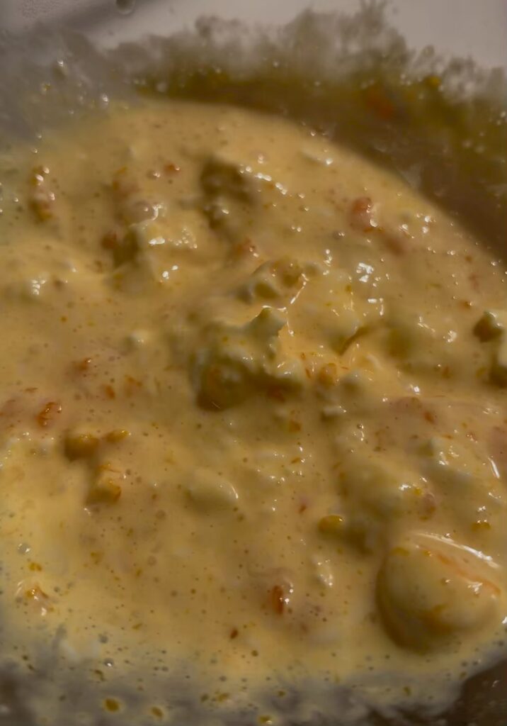 - 加熱後、フォークで粗めにつぶし、マヨネーズを加えて混ぜたらタルタルソースの完成です。